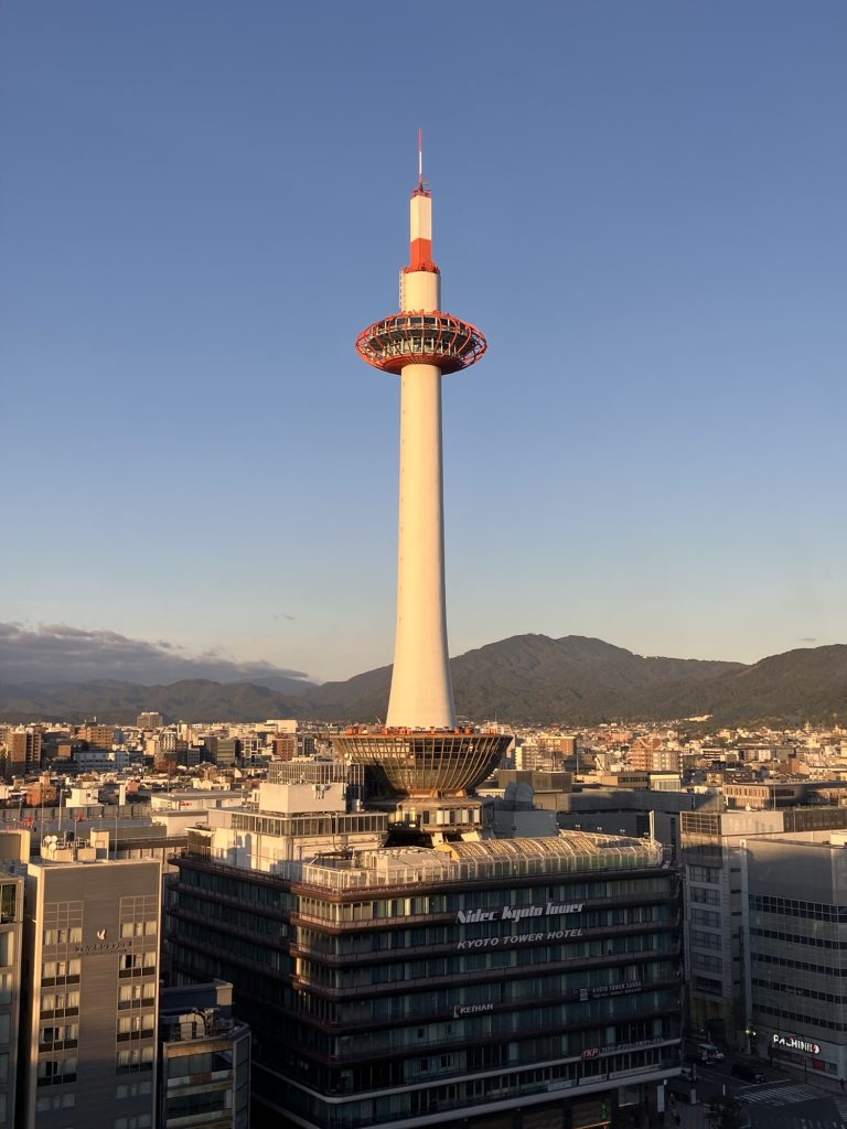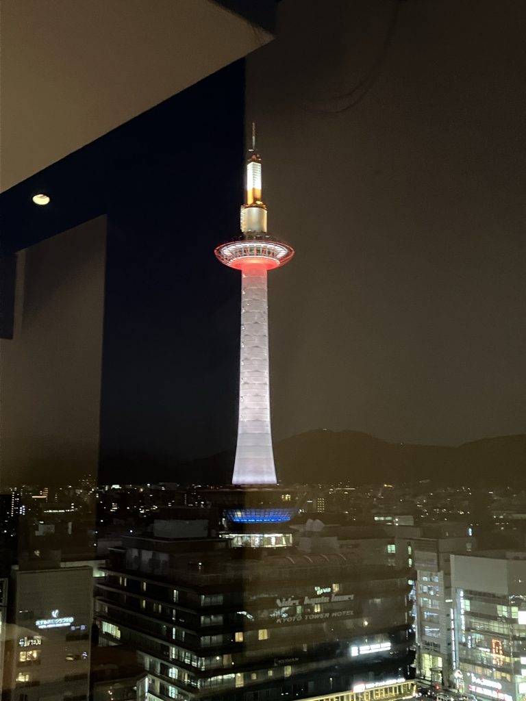 久しぶりに見る京都タワーは、青空の下でも、夜景のライトアップでも、とても美しかった❣️