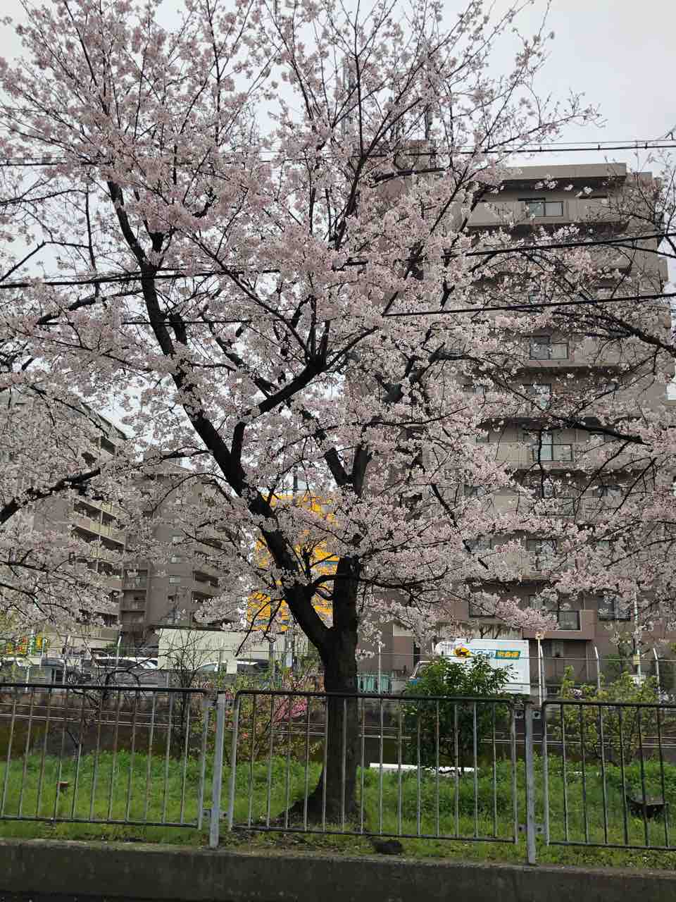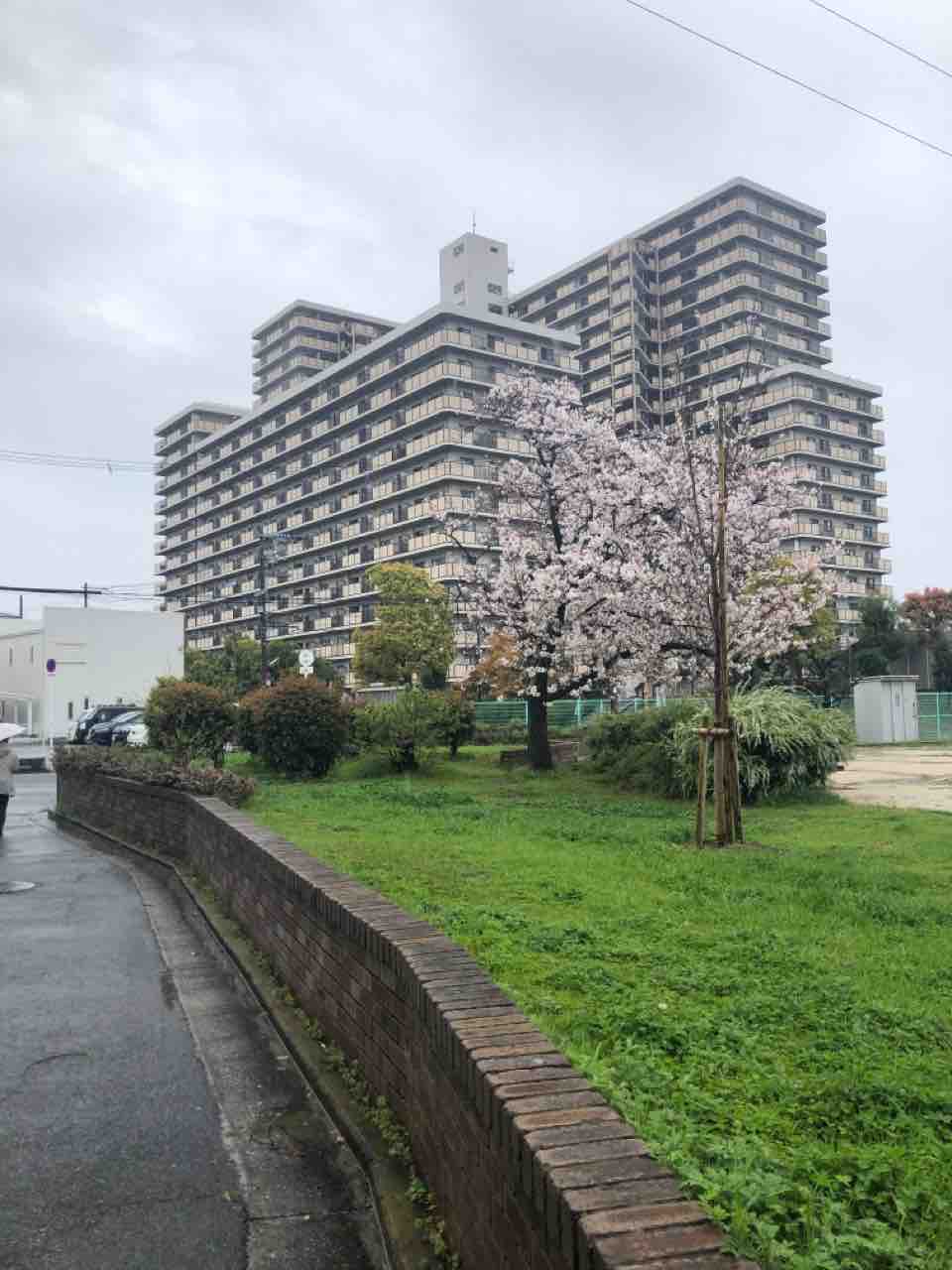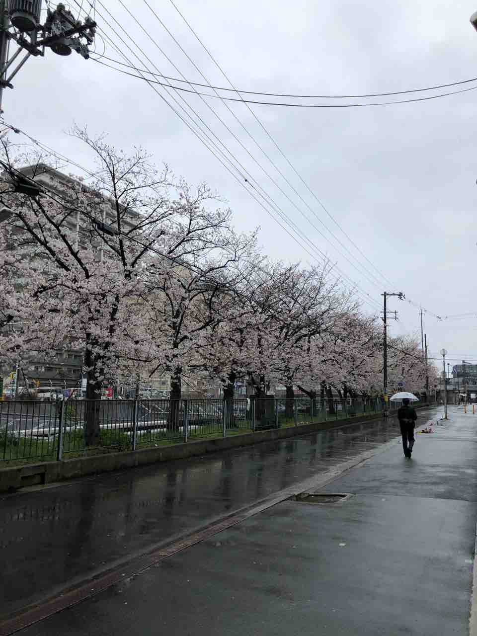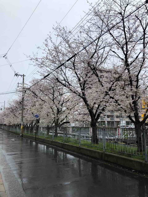 コロナウィルスに加えて雨の中、人影もない道にけなげに咲いている桜が寂しそう。
